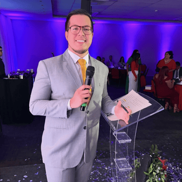 Paralelamente, me apaixonei pelo palco: Em 2019 me tornei mestre de cerimônias, apresentei mais de 100 eventos e expandi minha atuação para o digital, produzindo conteúdo, podcasts, vídeos institucionais e muito mais.